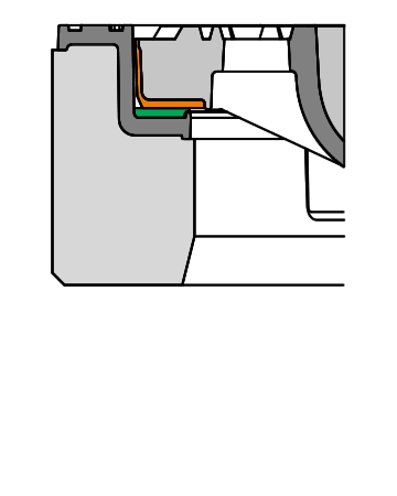 Die meisten Schachtabdeckungen mit Einlage haben bisher nur eine horizontale Dämpfung im Rahmen oder Deckel. Bei der neuen Generation von Schachtabdeckungen mit PUR-Einlage ist das dämpfende PUR-Element in L-Form konstruiert und fest mit dem Deckel verbunden. Diese neuartige dämpfende Einlage miminiert sowohl horizontale als auch vertikale Bewegungen des Deckels im Rahmen und verhindert den direkten Gusskontakt zwischen Deckel und Rahmen.